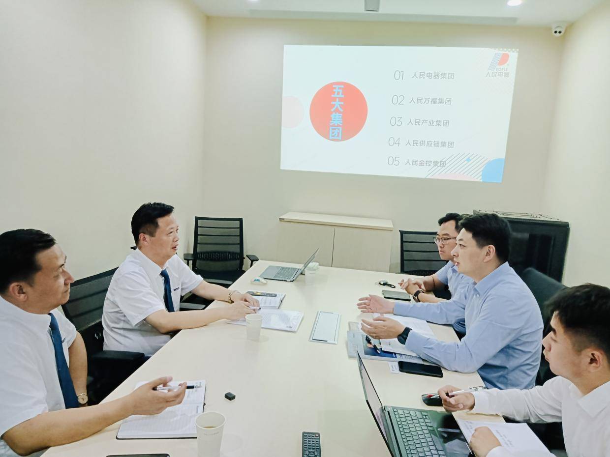张世林助理向平安财险安徽分公司领导介绍了人民电器始创于1986年,总部位于浙江乐清。人民电器控股集团是中国500强、世界机械500强企业,是第一批荣获全国质量奖企业。人民电器控股集团是全球领先的智慧电力设备全产业链系统解决方案提供商。集团始终以客户为中心,依托人民5.0系统,重点开发高效、可靠、技术密集的高低压智能电器、智能成套、超高压变压器、智能家居、绿色能源等电气设备,形成集发、储、输、变、配、售、用为一体的全产业链优勢,为智慧电网、智能制造、智能楼宇、工业系统、智慧消防、新能源等行业提供全面的系统解决方案,实现集团绿色、低碳、环保、可持续高质量发展。集团拥有35家全资子公司,150家控股成员企业,1500多家加工协作企业和遍布全球的5000多家销售公司。产品畅销全球125多个国家和地区公司,并在东亚、中东地区、北美、欧盟等50多个国家建立了分支机构。