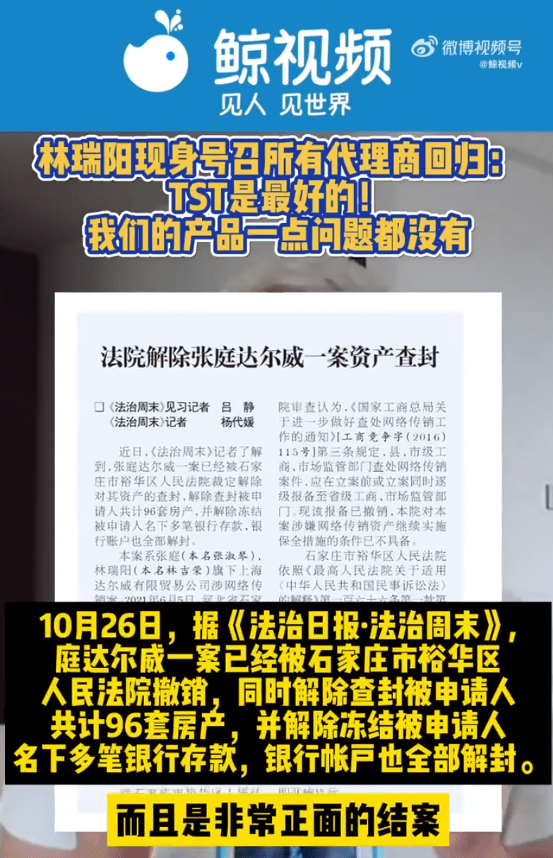 10月26日,据《法治日报·法治周末》报道,张庭(张淑琴)、林瑞阳(林吉荣)夫妇创办的品牌TST庭秘密因涉嫌传销,相关公司名下的96套房产曾被冻结。日前,这96套房产的查封被解除。