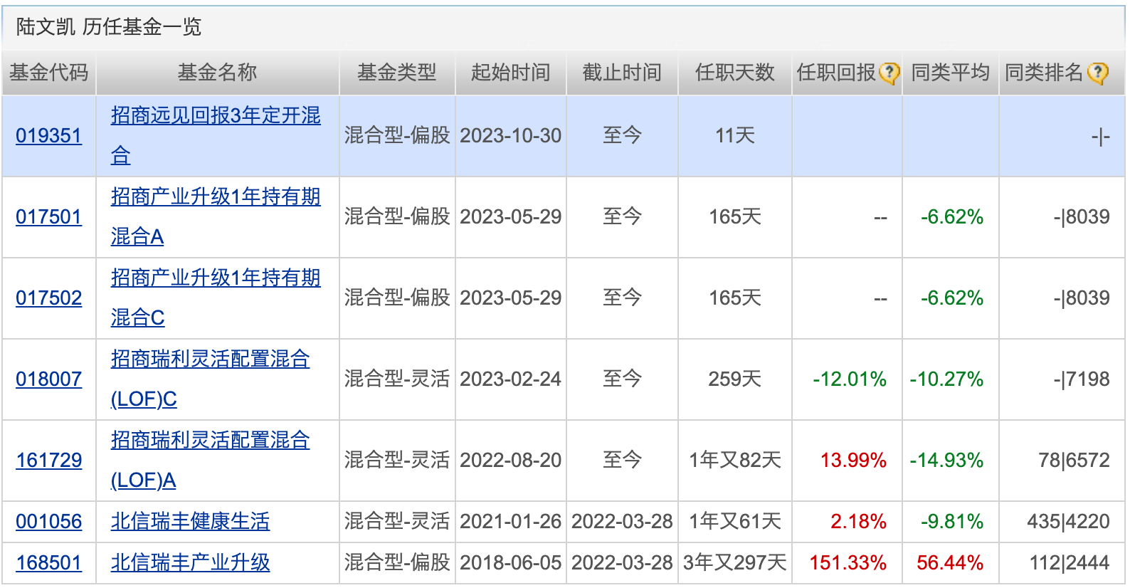 基金经理:陆文凯