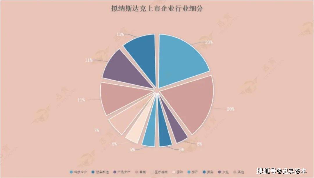 拟纳斯达克上市企业中,整体从细分行业来看。还是科技企业(含服务、医药、制造行业,一起的科技性企业)占比最高为20%;设备制造、产品生产、营销三类其次,分别占比11%,很明显可以看出制造业在这个比例里面又占比最高,所以中国的制造型中小企业应该大胆的选择纳斯达克!医疗器械占比7%;保险、房产、劳务、众包分别占比5%。由此,医疗企业也是到纳斯达克的香饽饽。人力资源这种劳务、众包等也是势不可挡!