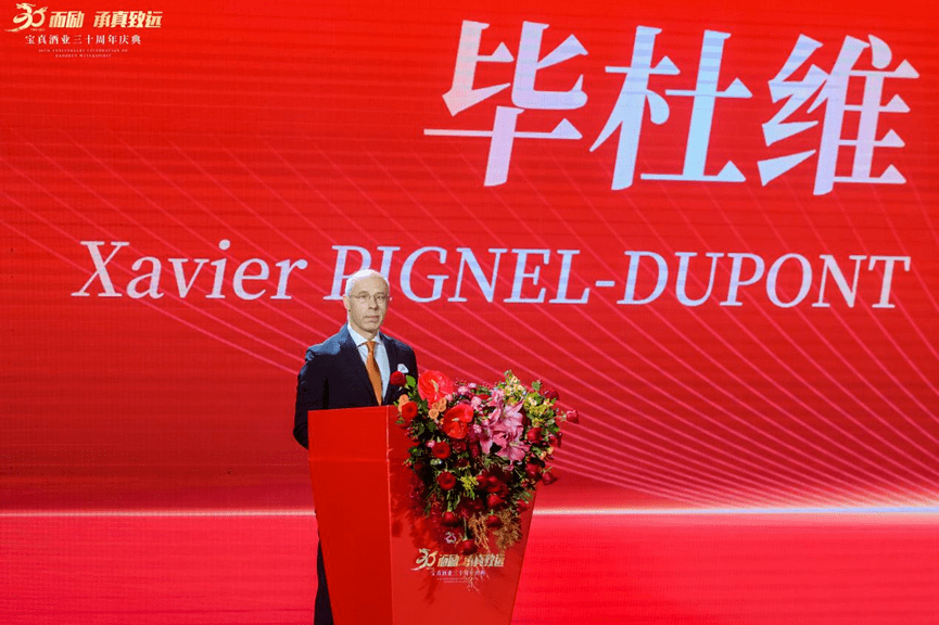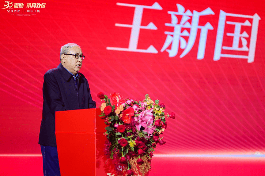 庆典仪式上,中国酒类流通协会会长王新国发表了热情洋溢的致辞,王会长表示,宝真酒业是中国酒类流通行业的杰出代表,三十年来,在公司创始人、董事长潘智群带领下,风雨前行,真心不移,真诚担当,为消费者提供美酒、货真价实,为合作伙伴创造价值、情真意切,成为中国酒类流通市场中的一个标杆,树立起中国酒类行业中的一面旗帜。