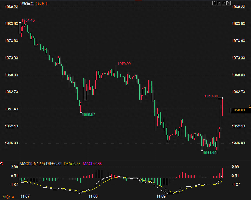(现货黄金30分钟走势图)