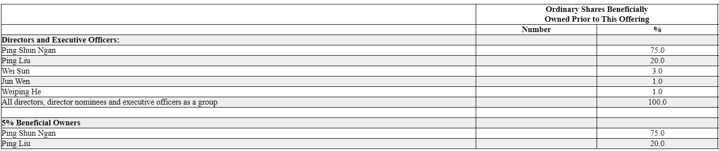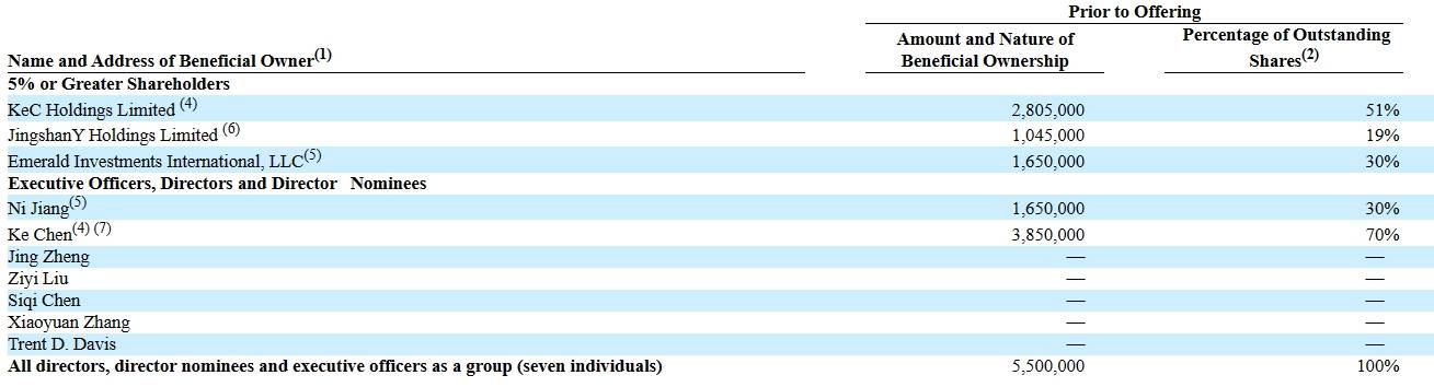 IPO前,Ping Shun Ngan持股75%,刘萍持股20%,Wei Sun持股3%,Jun Wen、Weiping He各持股1%。