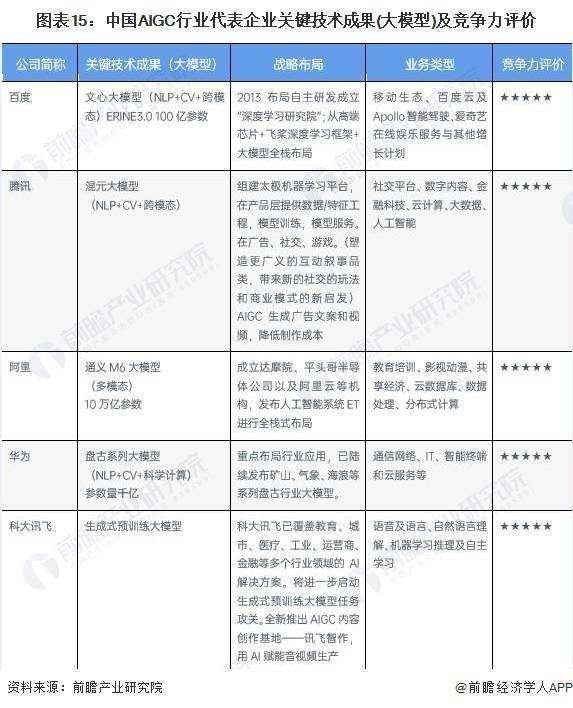——主要企业关键技术成果(大模型)及竞争力评价