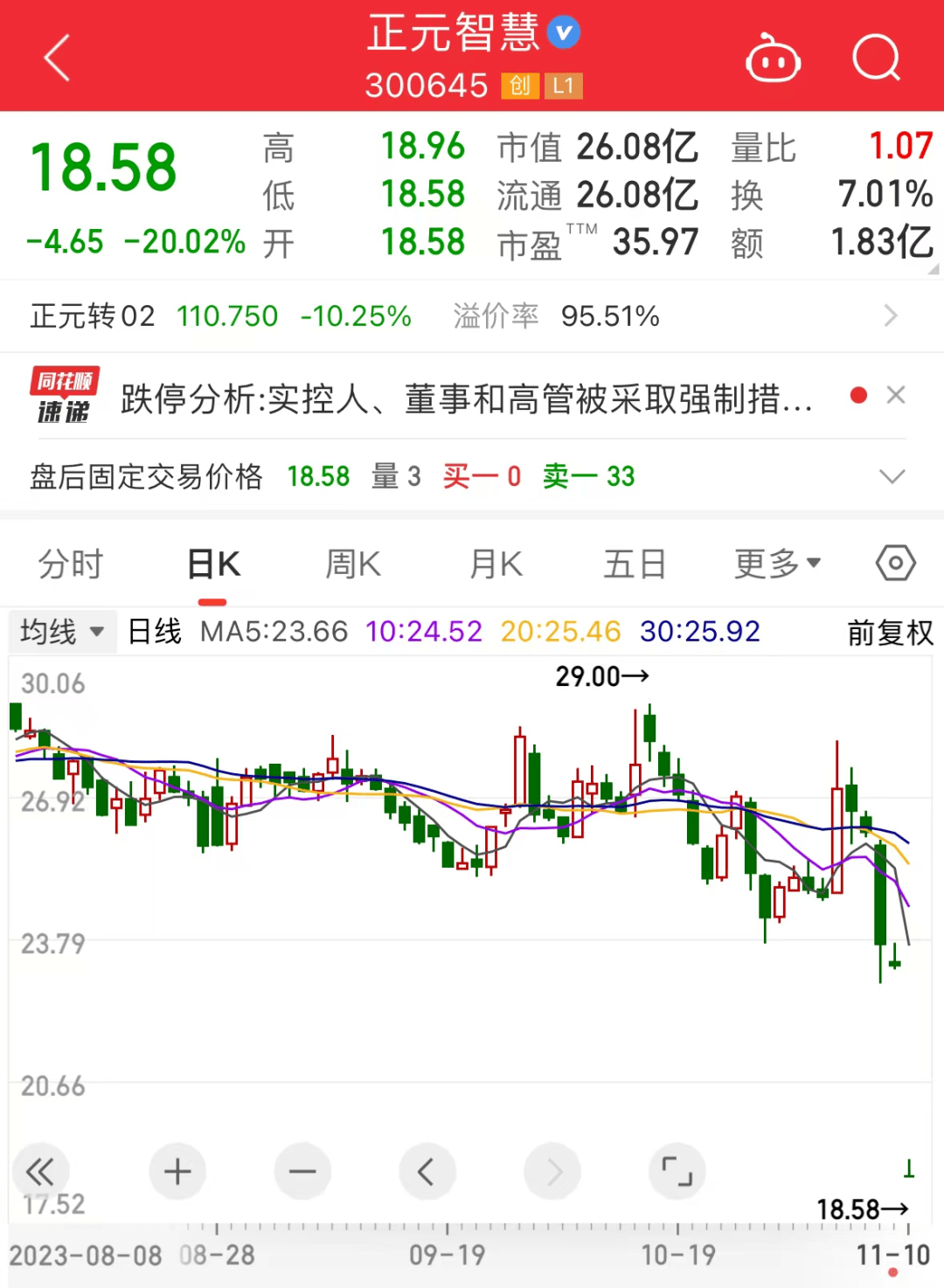 盘中跌停板一度开盘,随后大笔卖单迅速封死跌停。截至收盘,该股报18.58元,跌停板上封单近5.6万手。