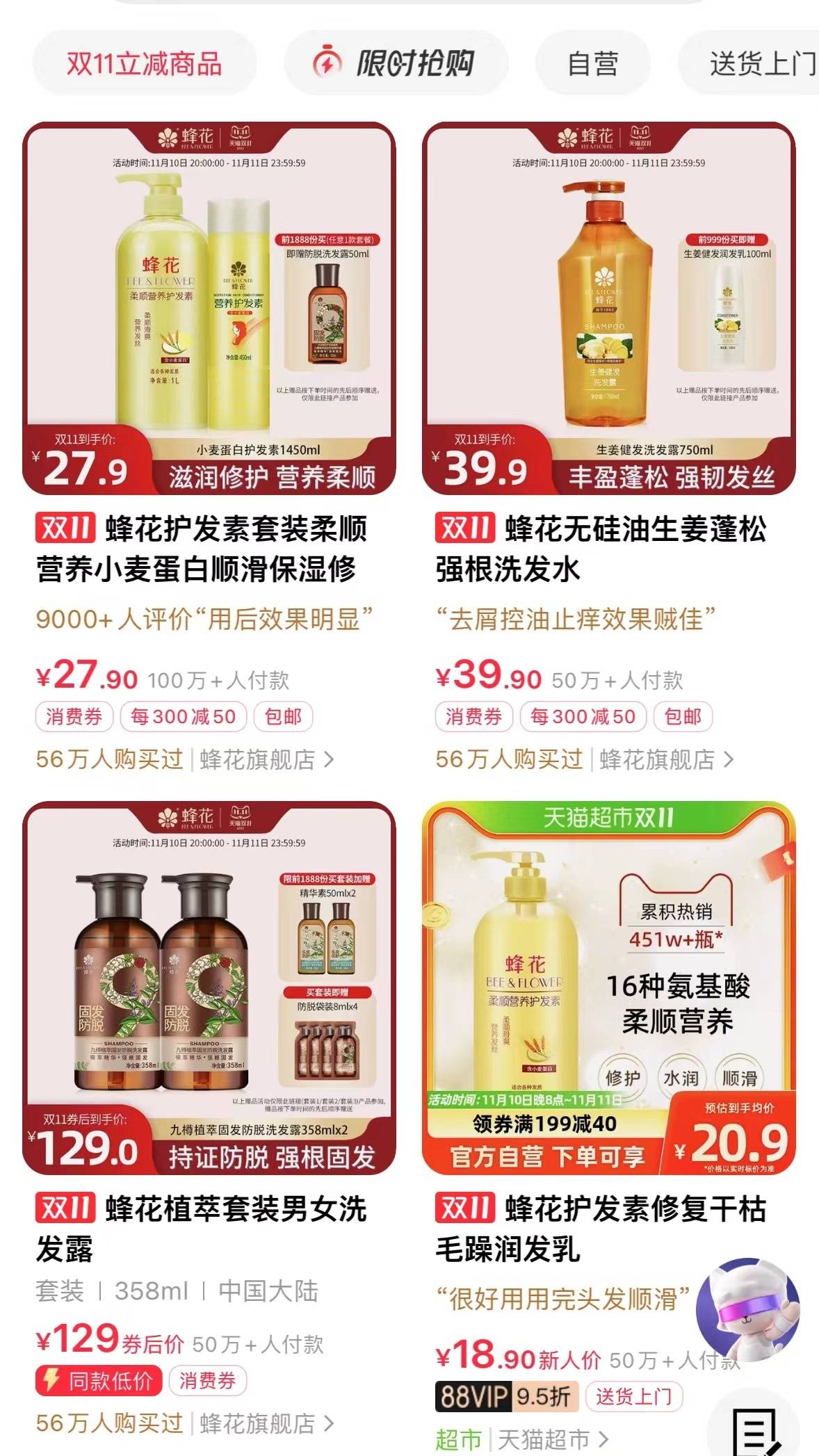 天猫平台上,蜂花销量惊人 图片来源:天猫截图