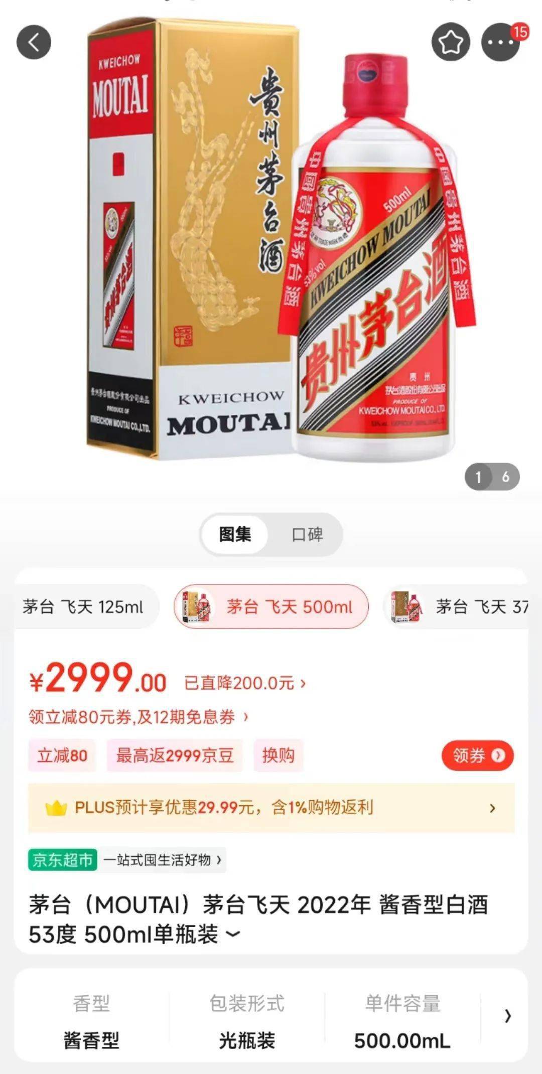 目前,飞天茅台在贵州茅台京东自营店、天猫超市仍然按照1499元的价格进行预约抢购,与以往一样。而在京东超市白酒自营专区上,飞天茅台的售价为2999元,与涨价前的市场价格差别不大。