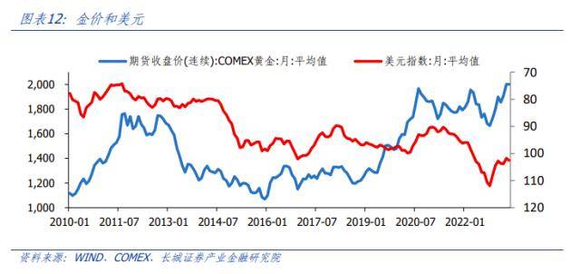 但短期内,考虑到美元与黄金的“跷跷板效应”,美元升值或将导致黄金价格回调。上文分析过,美元指数短周期下行结束,重回上行趋势,这会导致黄金承压下行。不过,在长周期牛市的制约下,黄金下行的空间或将有限。