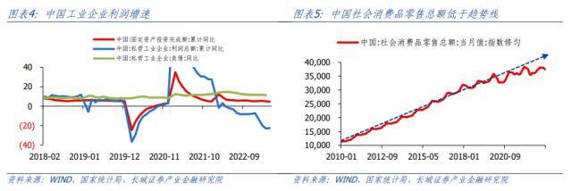 国内经济方面,中国经济从长周期来看已经进入房地产下行阶段和人口下行周期,叠加三年新冠疫情私人部门资产负债表收缩。短周期来看经济正处于复苏阶段,但力度较弱且可能会反复。中美经济摩擦给出口部门造成一定压力。私人部门需求仍有待恢复,工业企业利润增速仍在负增。为了鼓励居民消费,国内政策工具箱需要进一步打开。