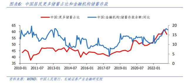 疫情过后,中国居民储蓄意愿上升,储蓄存款持续增加。根据央行调查,疫情发生前,2019年四季度居民表达更多储蓄占比为45.7%,而2023年一季度,更多储蓄占比为58.0%。疫情期间经济波动和收入不稳定促使居民产生更多储蓄的意愿。2022年至今,国内金融机构储蓄存款增速不断提升。2023年4月,中国金融机构储蓄存款同比增加了17.71%。居民储蓄意愿较高,影响消费意愿,不利于经济持续复苏。