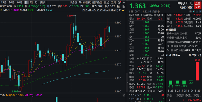 ETF方面,A给规模领先中药ETF(560080)跌超1%,成交额超3300万元。上交所权威数据显示,昨日中药ETF(560080)获资金净流入2900万元。