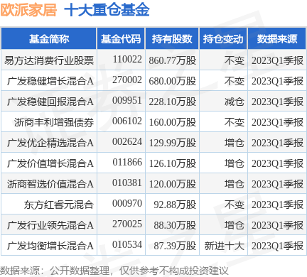 根据2023Q1季报公募基金重仓股数据,重仓该股的公募基金共64家,其中持有数量最多的公募基金为易方达消费行业股票。易方达消费行业股票目前规模为271.59亿元,最新净值3.732(6月26日),较上一交易日下跌1.43%,近一年下跌11.88%。该公募基金现任基金经理为萧楠 王元春。萧楠在任的基金产品包括:易方达瑞恒灵活配置混合,管理时间为2018年1月10日至今,期间收益率为147.5%;易方达消费精选股票,管理时间为2020年4月13日至今,期间收益率为-11.63%;易方达高质量严选三年持有,管理时间为2020年11月12日至今,期间收益率为-24.91%。王元春在任的基金产品包括:易方达瑞恒灵活配置混合,管理时间为2018年12月8日至今,期间收益率为220.18%;易方达现代服务业混合,管理时间为2018年12月8日至今,期间收益率为127.62%;易方达标普消费品指数A,管理时间为2021年5月29日至今,期间收益率为9.77%。