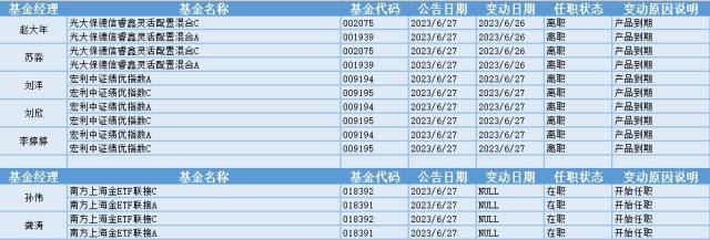 根据巨灵统计的数据显示,近30天(5.28-6.27)共有384只基金产品的基金经理发生离职变动。其中今天(6.27)有6只基金产品发布基金经理离职公告,从变动原因上来看,5位基金经理是由于产品到期而从管理的10只基金产品中离职。