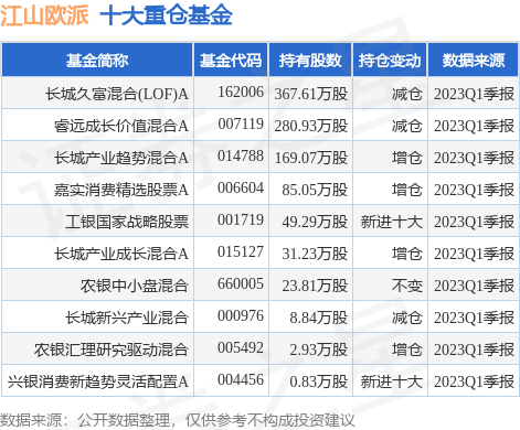 根据2023Q1季报公募基金重仓股数据,重仓该股的公募基金共10家,其中持有数量最多的公募基金为长城久富混合(LOF)A。长城久富混合(LOF)A目前规模为37.37亿元,最新净值1.3713(6月26日),较上一交易日下跌1.5%,近一年下跌19.71%。该公募基金现任基金经理为陈良栋。陈良栋在任的基金产品包括:长城新兴产业混合,管理时间为2017年3月16日至今,期间收益率为112.61%;长城科创两年定开混合A,管理时间为2021年9月1日至今,期间收益率为-15.43%;长城产业成长混合A,管理时间为2022年6月21日至今,期间收益率为-12.09%。