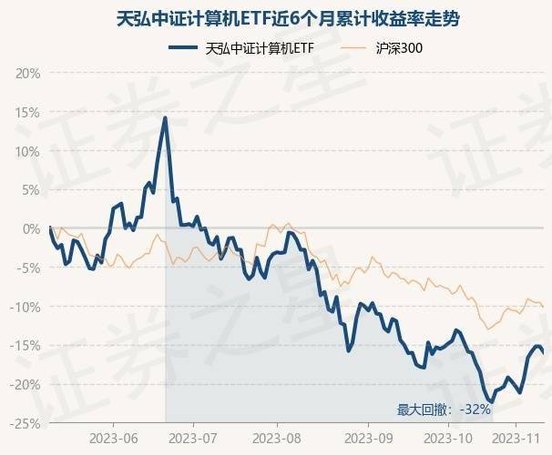 证券之星消息,11月10日,天弘中证计算机ETF最新单位净值为0.8338元,累计净值为0.8338元,较前一交易日下跌0.88%。历史数据显示该基金近1个月下跌1.71%,近3个月下跌13.52%,近6个月下跌15.95%,近1年上涨3.3%。该基金近6个月的累计收益率走势如下图: