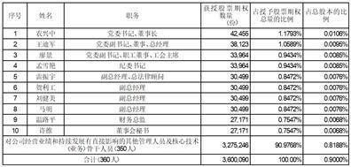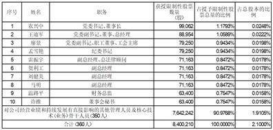 注:1.上述任何一名激励对象通过全部有效期内的股权激励计划获授的本公司股票均未超过公司股本总额的1%。公司全部有效期内股权激励计划所涉及的标的股票总数累计未超过本激励计划提交股东大会时公司股本总额的10%。