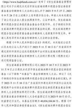 (二)《恒生前海基金管理有限公司关于以通讯方式召开恒生前海消费升级混合型证券投资基金基金份额持有人大会的第一次提示性公告》