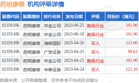 机构评级详情见下表: