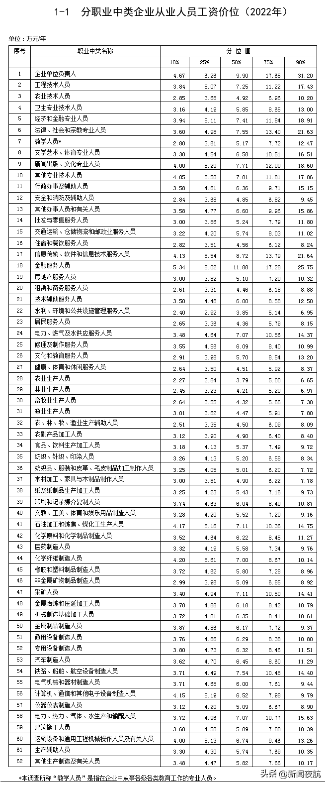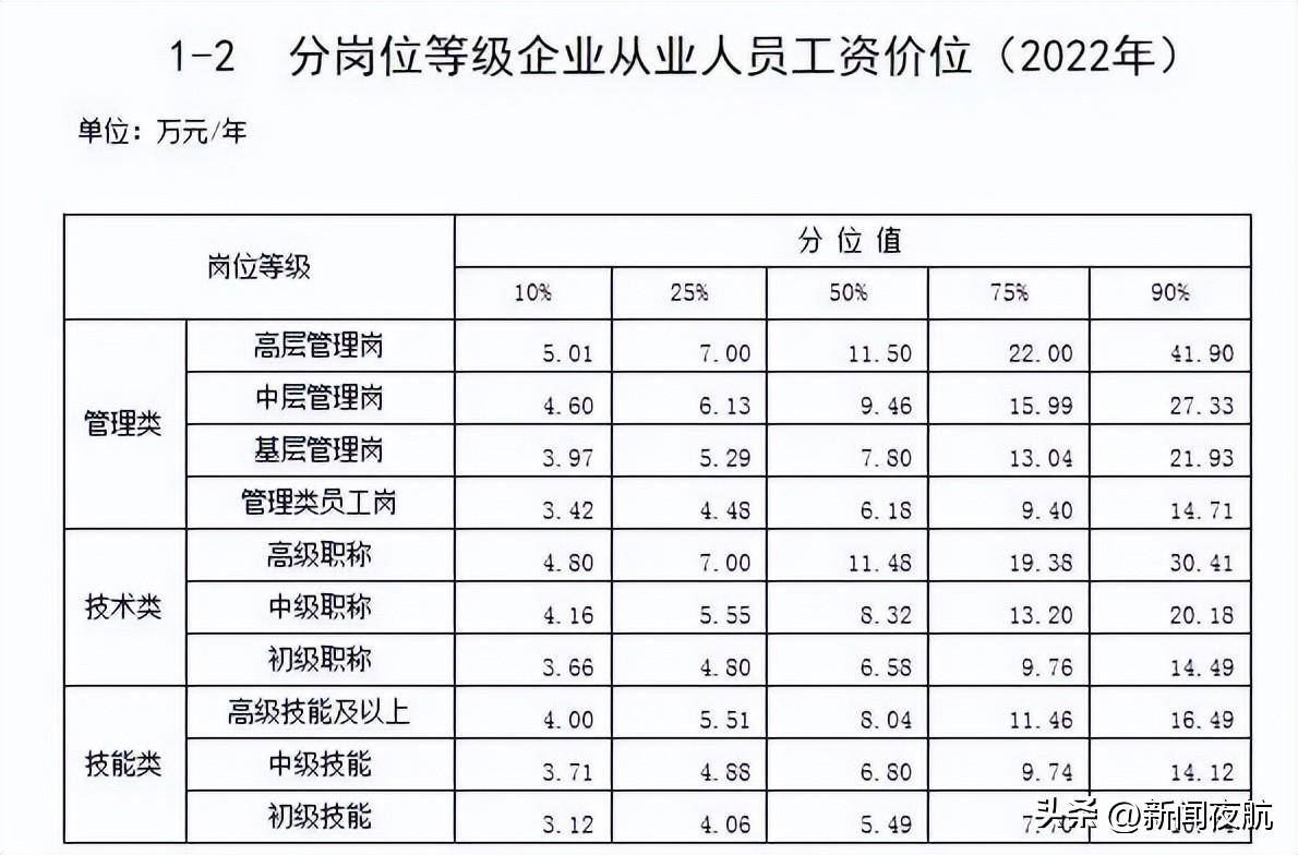 公布了不同职业企业从业人员工资价位、