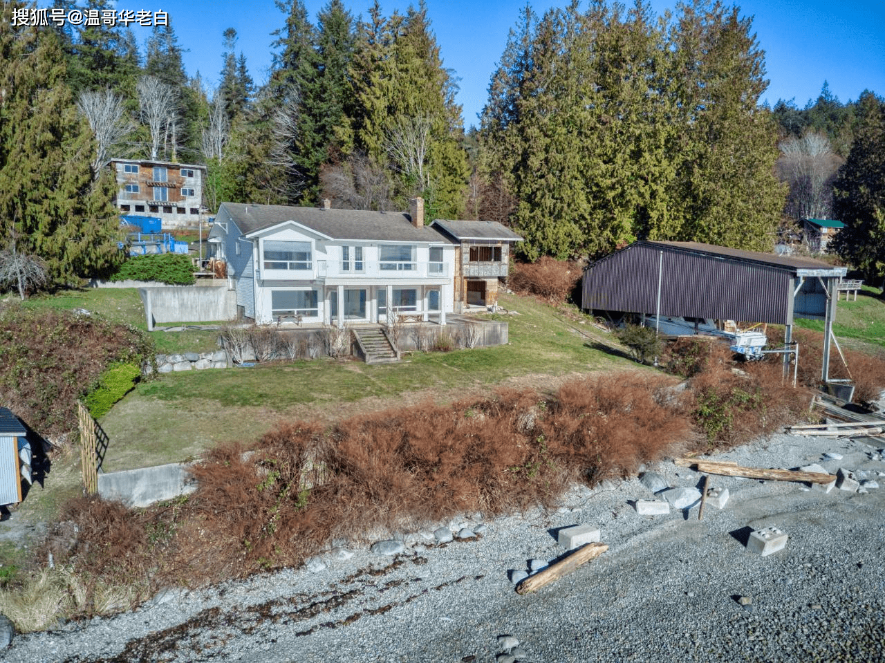 1.2英亩海边大地,3卧3卫3500平尺室内面积,外加稀有船坞及三层独立厂房。