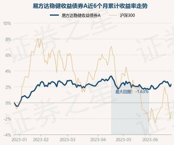 6月27日,易方达稳健收益债券A最新单位净值为1.3771元,累计净值为2.4077元,较前一交易日上涨0.28%。历史数据显示该基金近1个月上涨0.47%,近3个月上涨0.1%,近6个月上涨2.35%,近1年下跌0.2%。该基金近6个月的累计收益率走势如下图: