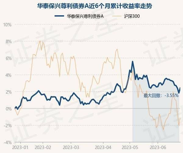 6月27日,华泰保兴尊利债券A最新单位净值为1.2237元,累计净值为1.2837元,较前一交易日上涨0.58%。历史数据显示该基金近1个月下跌0.28%,近3个月上涨1.76%,近6个月上涨2.43%,近1年上涨0.98%。该基金近6个月的累计收益率走势如下图: