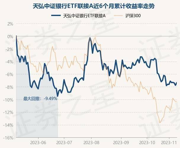 证券之星消息,11月9日,天弘中证银行ETF联接A最新单位净值为1.1976元,累计净值为1.1976元,较前一交易日上涨0.44%。历史数据显示该基金近1个月下跌2.88%,近3个月下跌5.19%,近6个月下跌7.34%,近1年上涨11.32%。该基金近6个月的累计收益率走势如下图: