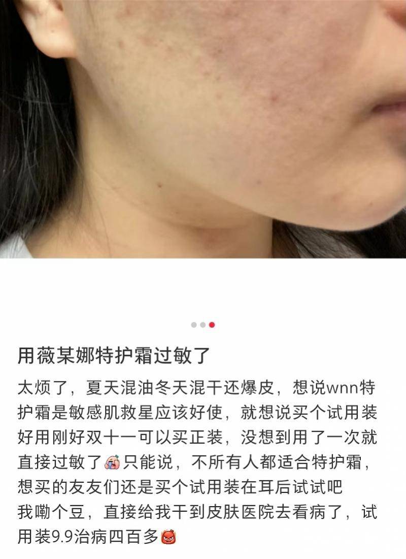 去年双十一期间,就有媒体报道称,不少消费者反映“薇诺娜高保湿修护面霜”存在发臭、使用过敏等情况。与此同时,品牌旗下的冻干面膜产品也出现货不对板、使用后脸上泛红发痒等问题。虽然薇诺娜称产品符合国家相关标准,但这些说法消费者并不买账。记者发现,今年仍有消费者反映该品牌产品“使用后过敏”。