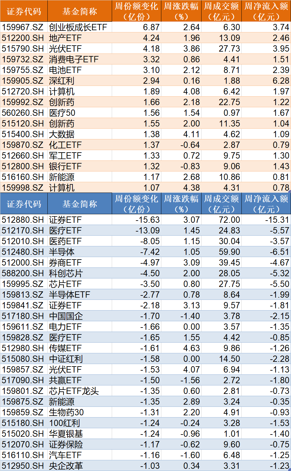 ETF本周份额减少约78亿份,净流出约113亿元