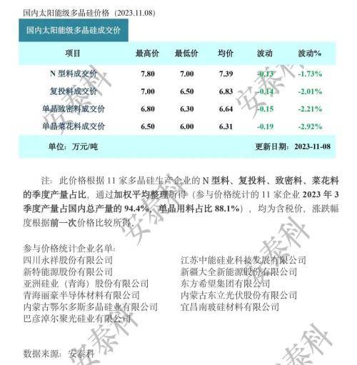 中国有色金属工业协会硅业分会数据显示,本周多晶硅价格跌幅收窄,市场成交回暖。中邮证券观点指出,国内需求持续超预期,光伏产业链有望加速出清。