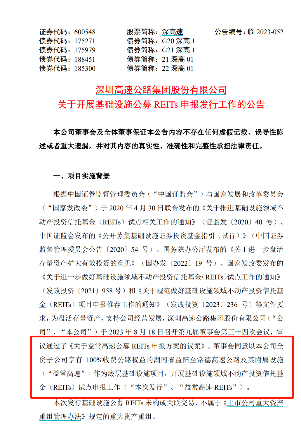 目前上交所网站上暂时未有相关信息披露文件,而从8月份,深高速发布了《关于开展基础设施公募REITs申报发行工作的公告》,揭开这个项目的基本情况面纱。