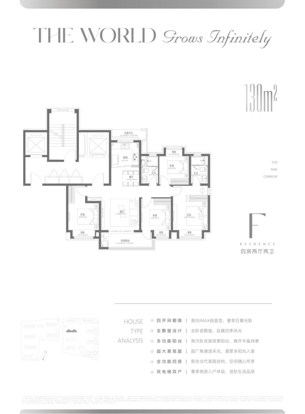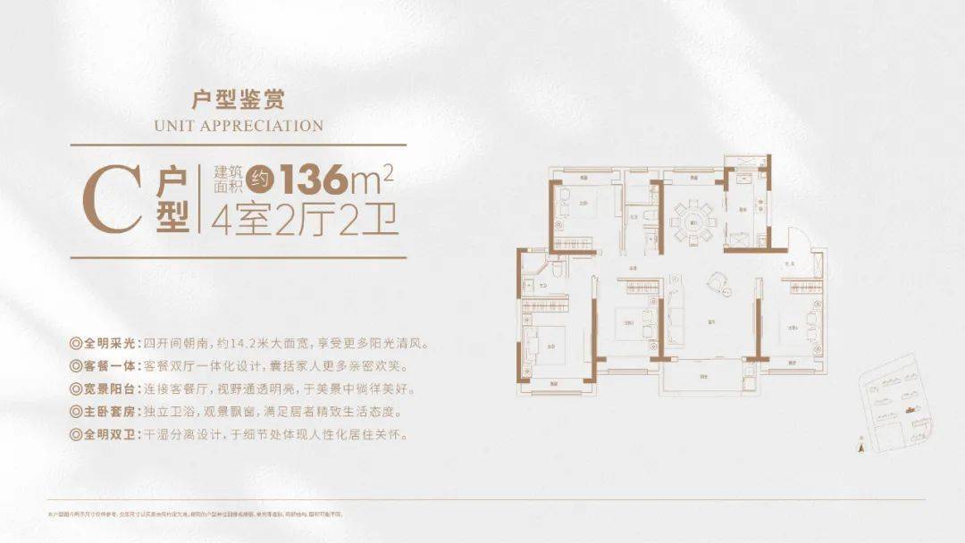 IMAX级的巨幅横向面宽+四开间朝南,室内采光非常震撼,能够无死角观赏滨水公园。
