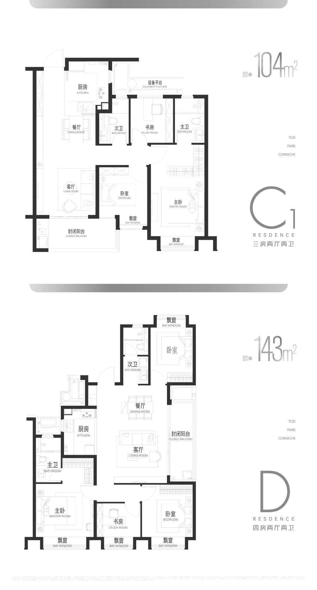 三期建面约93-130m²三/四房