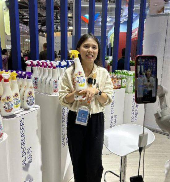 在人流如织、流光溢彩的美妆及日化用品展馆内,国际大牌护肤品展台前排起了长队。“你经过雅诗兰黛,路过高丝,靠着墙走,9号门门口就是我们展台了。”李鹏刚在电话中向客户这样描述着自己展台的方位,其中暗藏着他们来参加进博会的“小心思”。“虽然我们的展位不在黄金地段,人气不如大牌,但我们看中的是进博会的平台效应、溢出效应,‘蹭’大牌的流量,总会找到商机。”李鹏刚说。