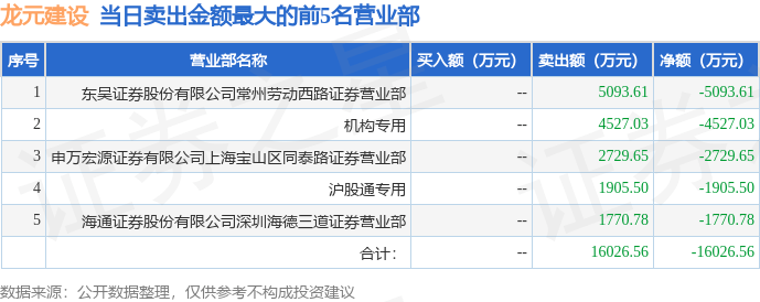 沪深交易所2023年6月28日公布的交易公开信息显示,龙元建设(600491)因有价格涨跌幅限制的日价格振幅达到15%的前五只证券登上龙虎榜。此次是近5个交易日内第1次上榜。