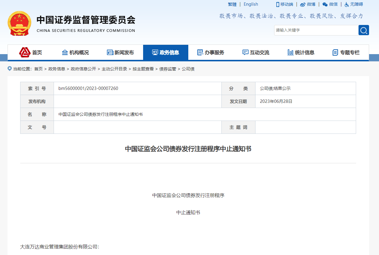 原标题:证监会:中止大连万达商管公开发行公司债券注册程序