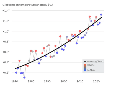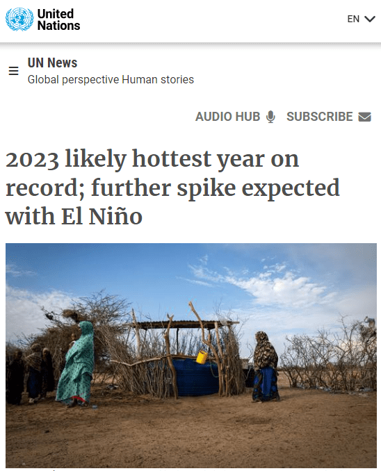 世界气象组织(WMO)本周也发布警告称,今年回归的厄尔尼诺气候现象将至少持续到2024年4月,这将导致今年剩余时间内的气温进一步上升。