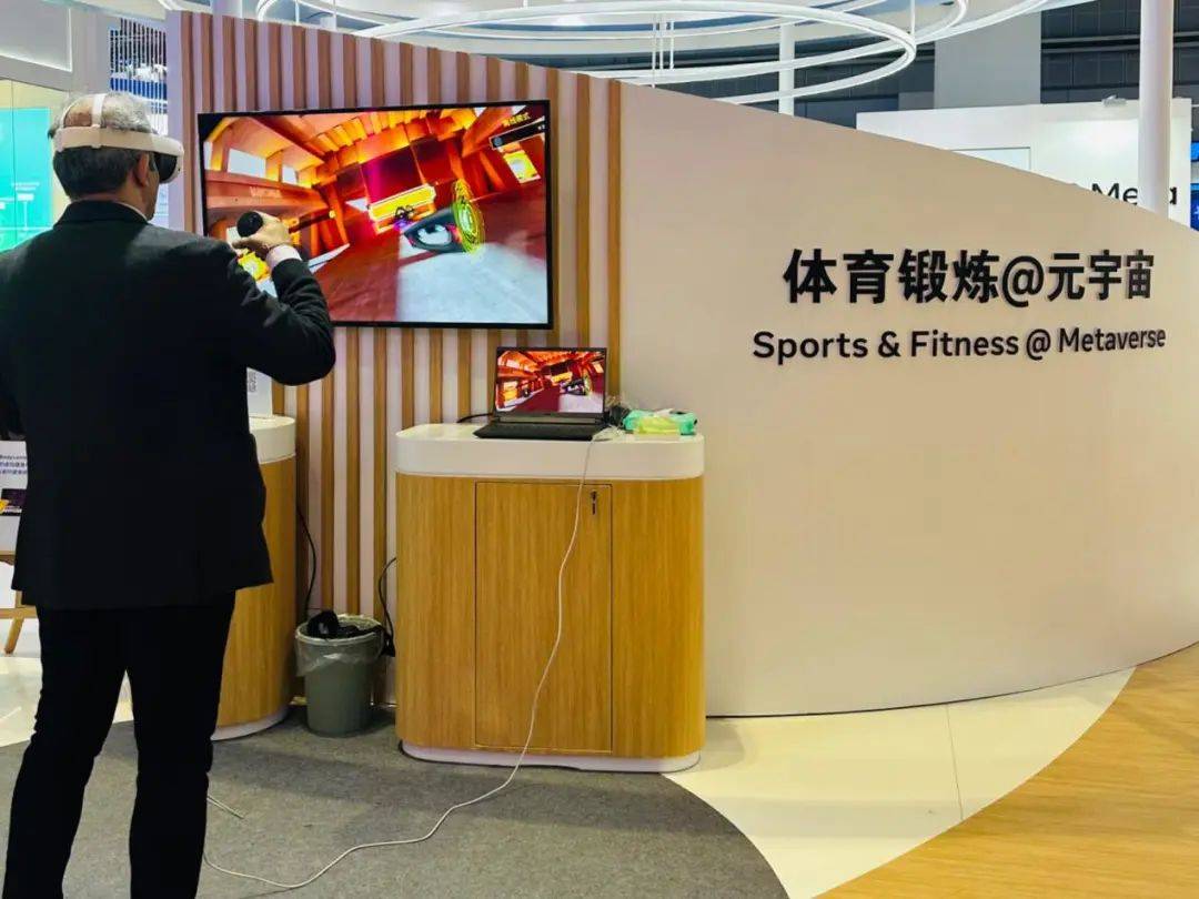 斯凯奇特别设置的球场上,新晋的“顶流”运动匹克球,是整个会场最受欢迎的体验项目之一,人气不亚于楼下排队试吃的比利时巧克力;腾讯的体感健身应用“乐龄互动健身房”,则为银发族提供了适老设计,能够同时满足锻炼、娱乐和社交需求;首次在进博会亮相的Meta带来的MR头显设备,同样吸引了不少想要一试身手的参展观众。