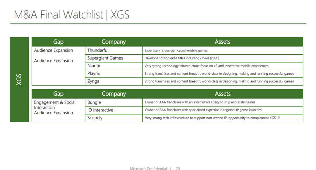 虽然不清楚Nadella最终是否批准了该事项,但在微软2021年4月的内部收购文件中,世嘉仍被列为重点目标。此外,Bungie、Zynga 和 IO Interactive等公司也是微软重点考虑收购的对象。