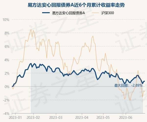 6月28日,易方达安心回报债券A最新单位净值为1.8669元,累计净值为2.9659元,较前一交易日上涨0.05%。历史数据显示该基金近1个月下跌0.32%,近3个月下跌0.92%,近6个月上涨0.82%,近1年下跌4.36%。该基金近6个月的累计收益率走势如下图: