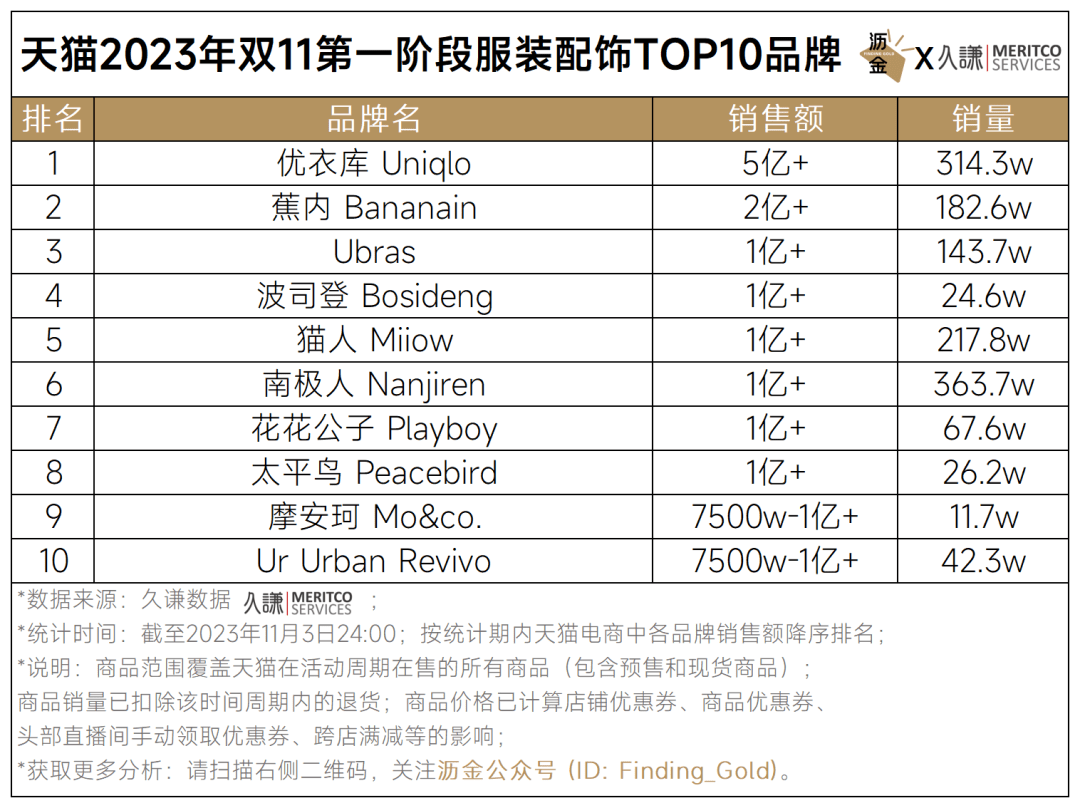 值得注意的是,本次只选择了天猫具有代表性的16个二级类目品牌、商品销售榜单进行分析,且品牌预售表现和排名取决于品牌应对大促的策略,对于天猫双11第一阶段战绩仅有部分参考作用。