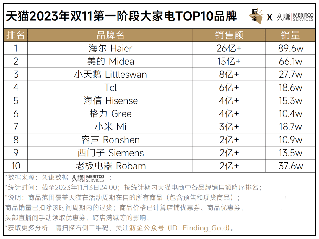 天猫2023年双11第一阶段16个类目销冠品牌总览