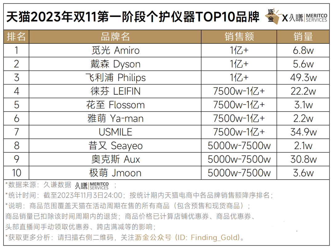 天猫双11第一阶个护清洁TOP10商品请输入图说