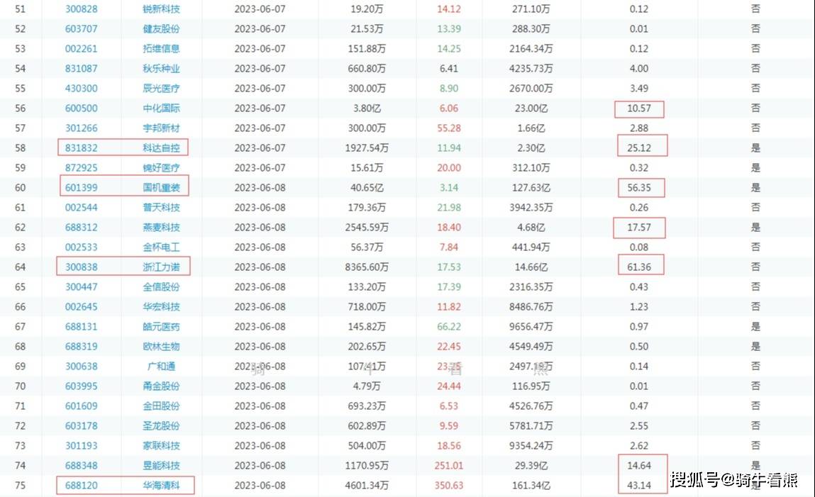 6月8日(周四)国机重装解禁比例达到56.35%;浙江力诺解禁比例达到61.36%;华海清科解禁比例达到43.14%。
