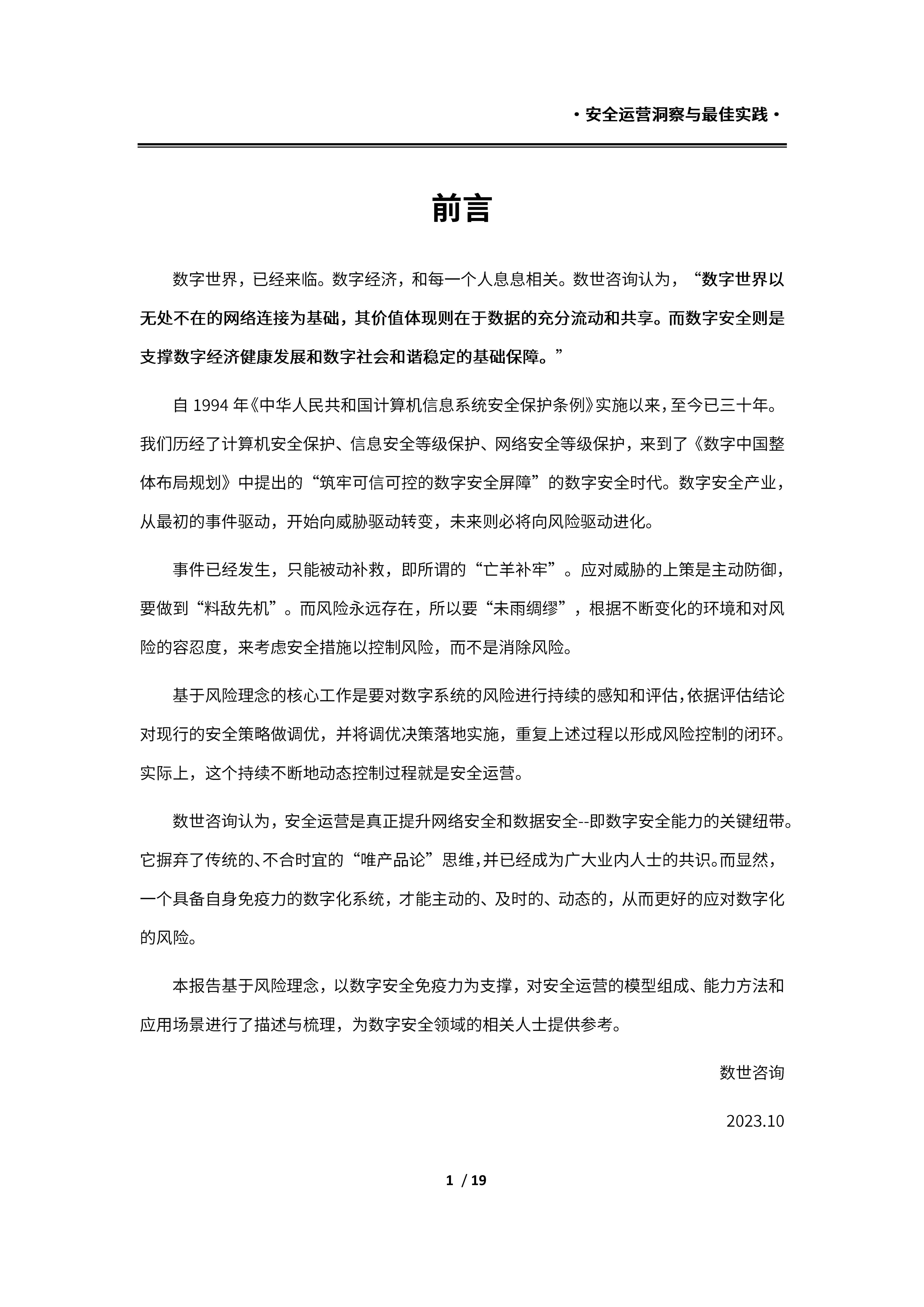 数字世界,已经来临。数字经济,和每一个人息息相关。数世咨询认为,“数字世界以无处不在的网络连接为基础,其价值体现则在于数据的充分流动和共享。而数字安全则是支撑数字经济健康发展和数字社会和谐稳定的基础保障。"