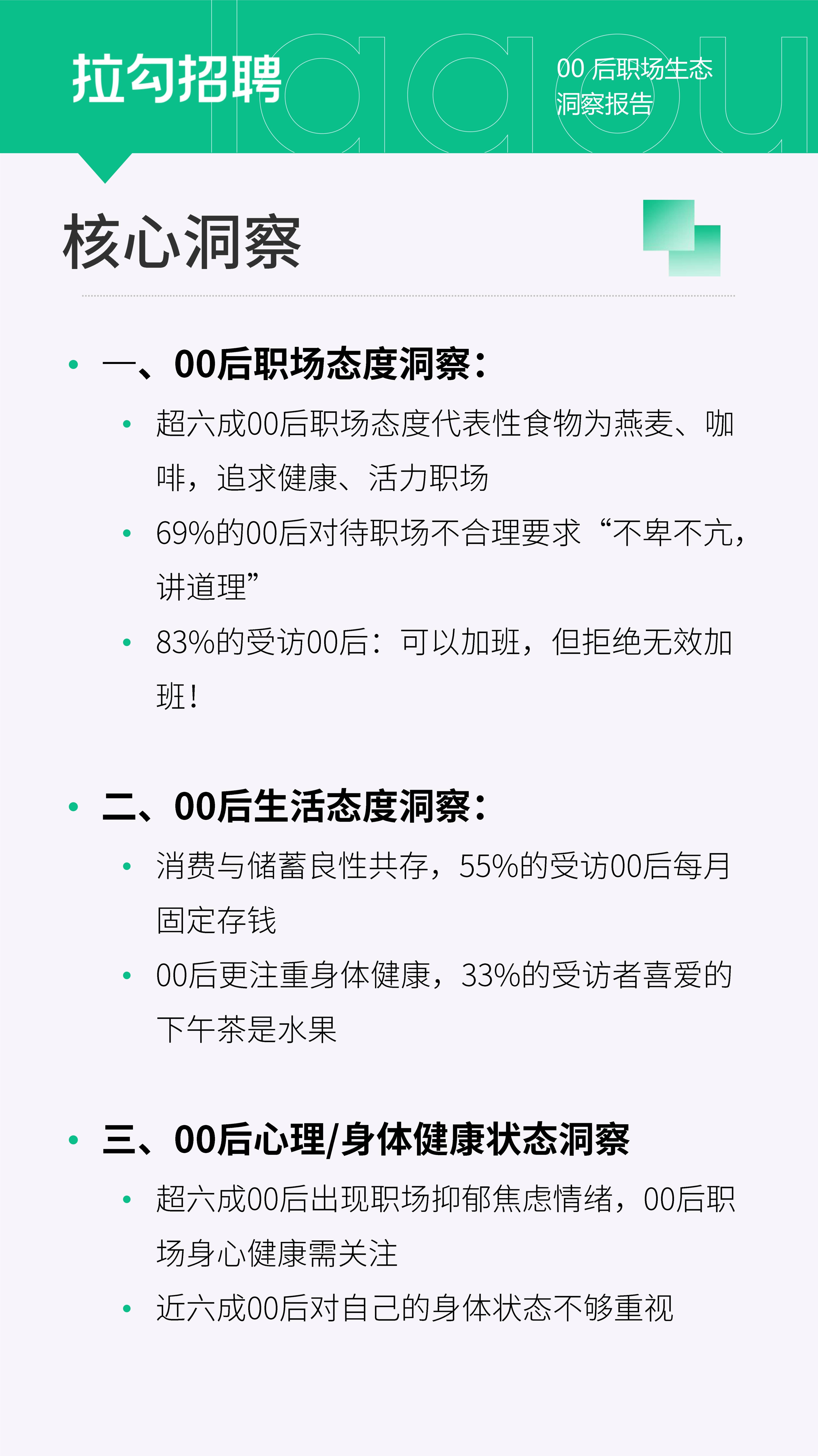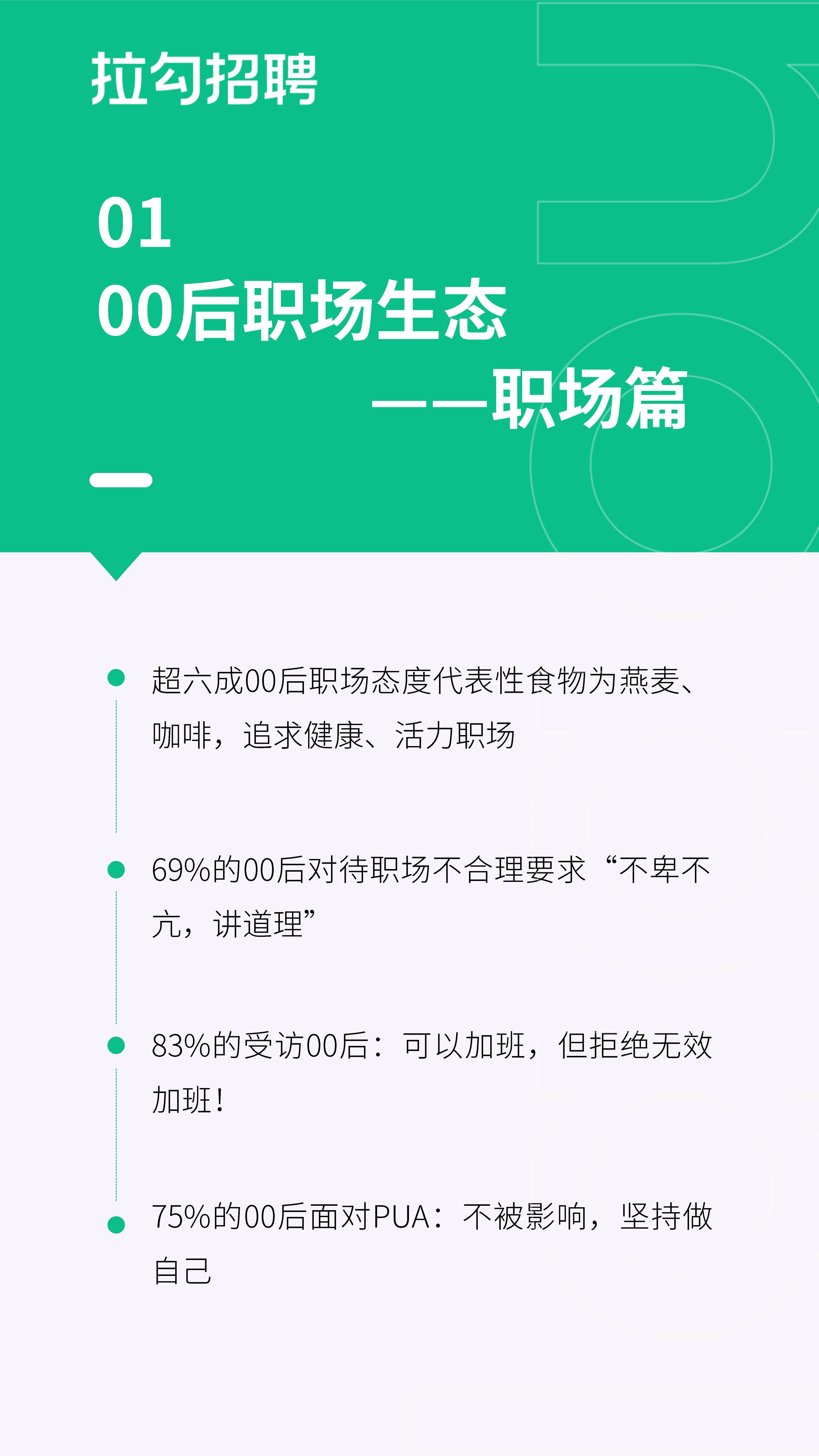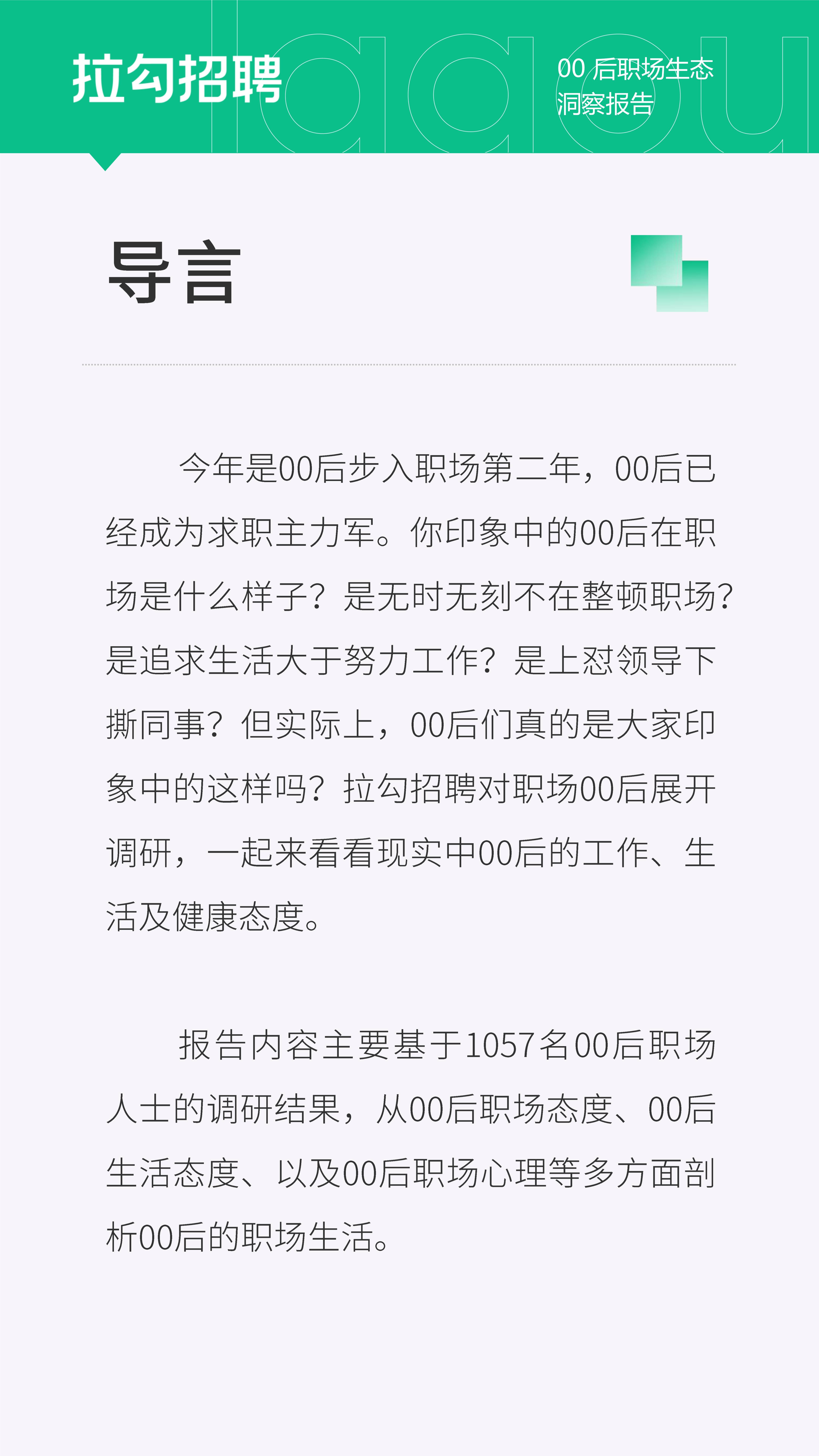 今年是00后步入职场第二年,00后已经成为求职主力军。你印象中的00后在职场是什么样子?是无时无刻不在整顿职场?是追求生活大于努力工作?是上怼领导下撕同事?但实际上,00后们真的是大家印象中的这样吗?拉勾招聘对职场00后展开调研,一起来看看现实中00后的工作、生活及健康态度。