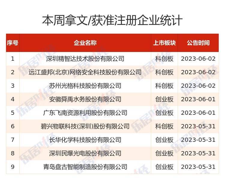 原标题:A股IPO周报(2023年5月27日—2023年6月03日) 丨备案4家,过会8家,9家拿文/获准注册