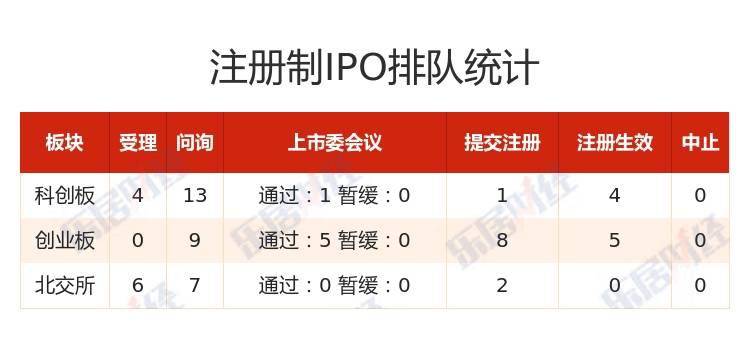 注册制IPO企业新增受理10家,上市委通过6家,注册生效9家。