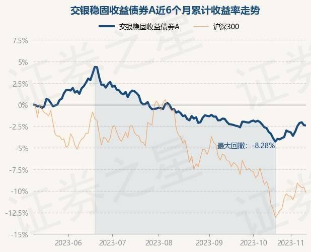 证券之星消息,11月10日,交银稳固收益债券A最新单位净值为1.1456元,累计净值为1.6084元,较前一交易日下跌0.03%。历史数据显示该基金近1个月下跌0.44%,近3个月下跌1.93%,近6个月下跌2.44%,近1年下跌1.63%。该基金近6个月的累计收益率走势如下图: