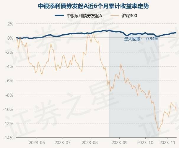 证券之星消息,11月10日,中银添利债券发起A最新单位净值为1.3427元,累计净值为1.7947元,较前一交易日下跌0.01%。历史数据显示该基金近1个月上涨0.13%,近3个月下跌0.19%,近6个月上涨0.74%,近1年上涨1.44%。该基金近6个月的累计收益率走势如下图: